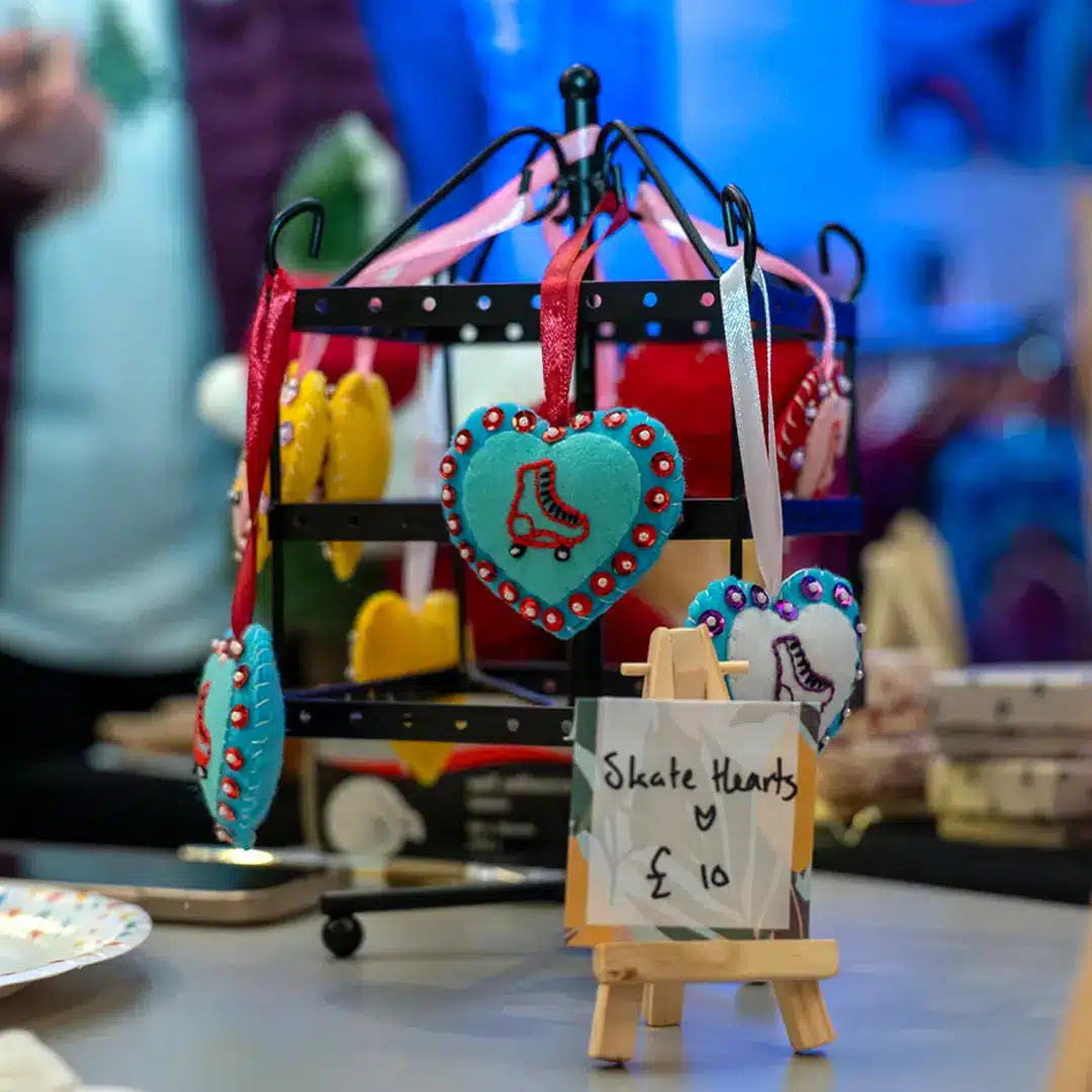 Our fabulous makers market celebrates the creative talent we have within our roller skating community. Browse a selection of fine art, prints, jewellery, embroidery, tie dye clothing and other unique gifts from our brilliant vendors. Â